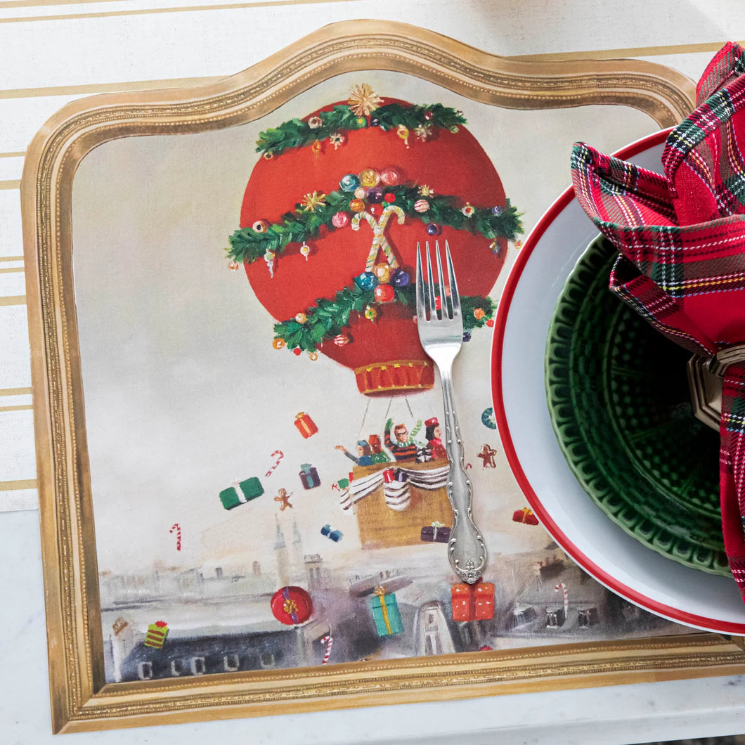 Have a happy holiday with this fun placemat collaboration with artist Janet Hill. Her magical balloon ride will be sure to put you in the holiday spirit!