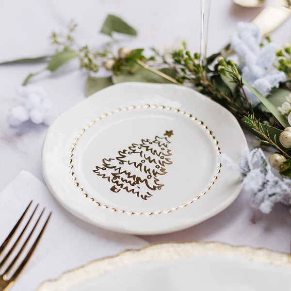 Giorno di Festa translates to a day of happy events," and this sophisticated, joyful dinnerware ensures just that. A simple gold tree and wreath adorn the Giorno di Festa Canape Plate and the result is timeless. You will enjoy this collection every holiday season for decades to come.