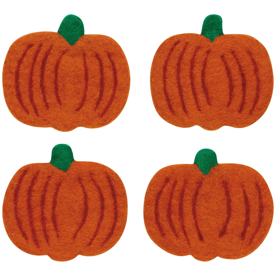The Hallows' Eve coaster set gives your drinks a soft, sturdy place to land. A place for drinks of all descriptions is always at hand - felted wool coasters beautifully blend durability, absorbency, and bright, bold color. Friendly tones of orange and green are lucky signs that Halloween will be filled with colorful fun.