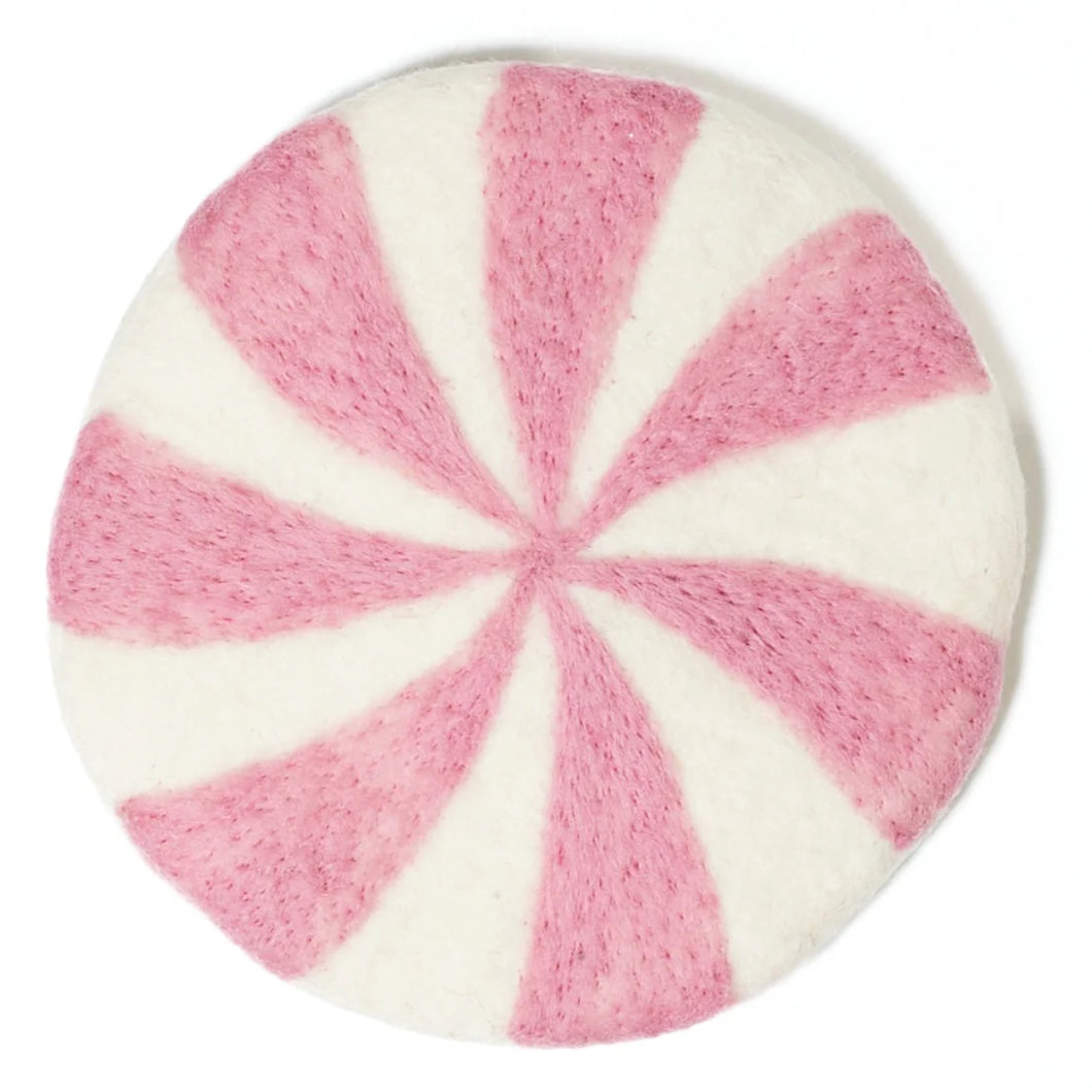 Style: Add a festive touch to your holiday decor with this pink candy cane trivet, crafted entirely from 100% wool for both style and function.