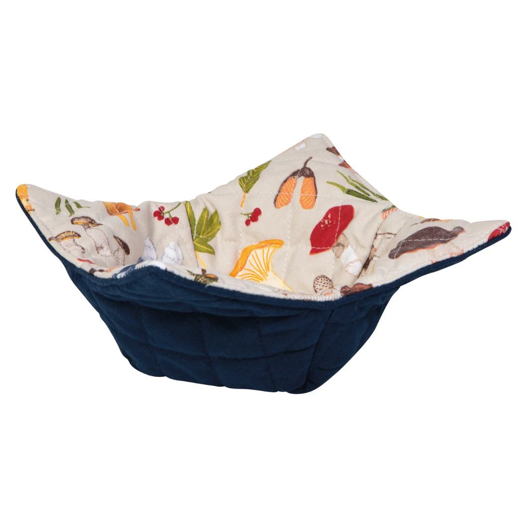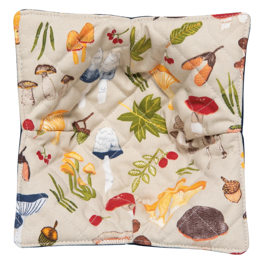 Cradle a warm bowl of morning oatmeal or afternoon soup safely in your hands with the Field Mushrooms quilted bowl cozy.