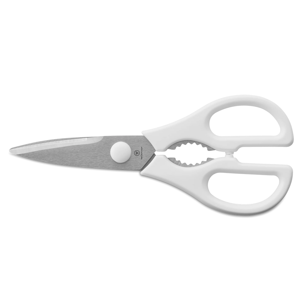 Blades come apart for easy cleaning and sharpening. Designed to be held with either right or left hand. Steel-tooth insets in handles twist open bottle and jar caps.