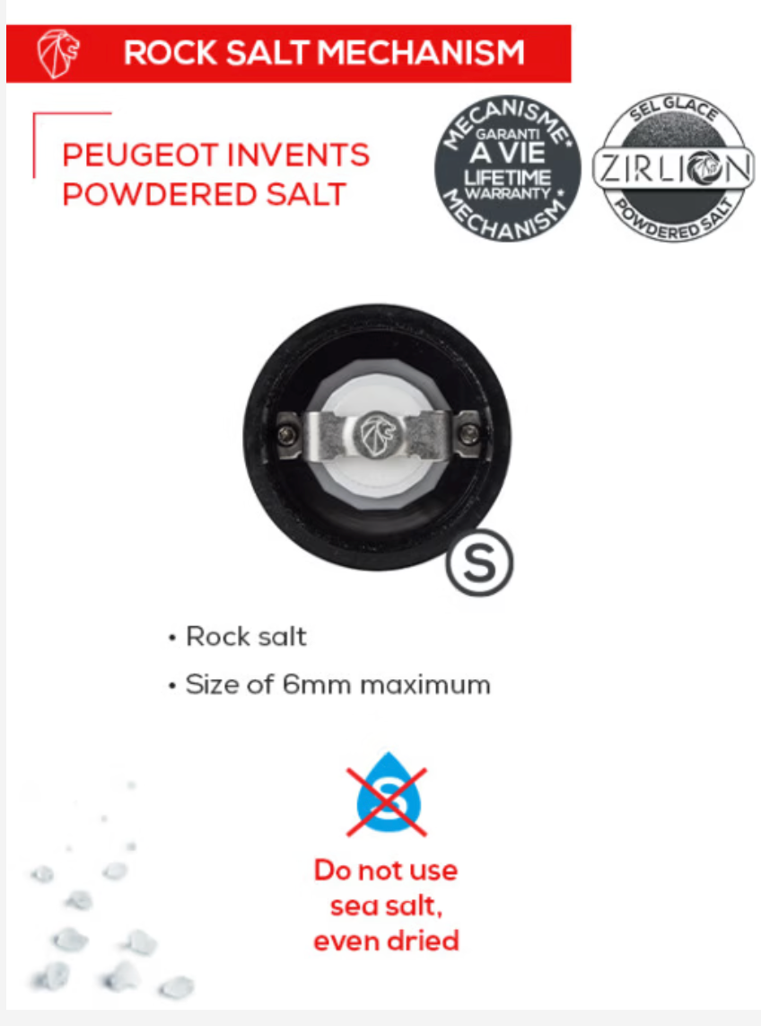 - Salt Mill: for grinding dry salt with a crystal size of less than or equal to 0.24 in / 6 mm. Do not use wet sea salt (even if d