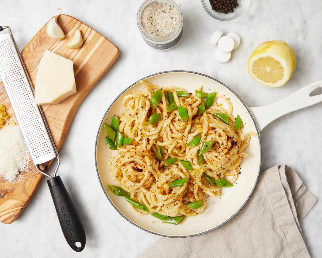 Our kosher salt infused with freshly ground Tellicherry peppercorns for a bright, briny take on a classic combo. Use it every day, on absolutely everything.