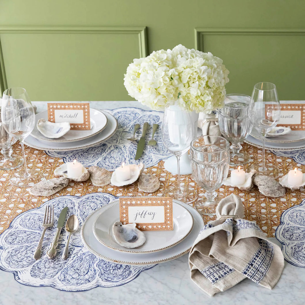 Framing your plate or decorating a seafood buffet, the Die-cut Blue Oyster Plate Placemat is a beautiful addition to seaside settings. We love how vintage oyster plates highlight each shell, and this rich navy version is a wonderful celebration of this summer snacking ritual.