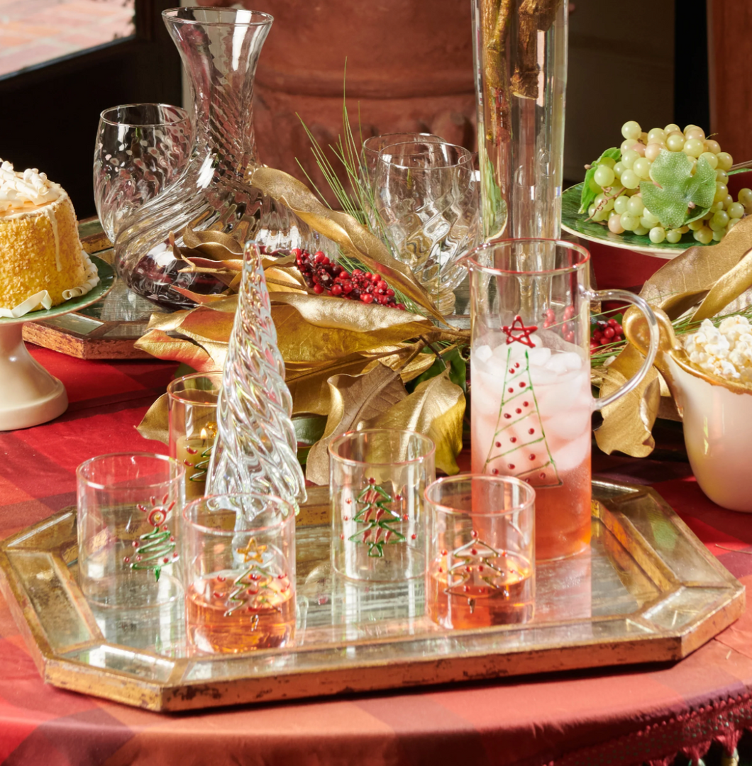 This handmade pitcher with applied Christmas tree design is perfect for the holidays. It compliments the Christmas tumbler and Highballs!