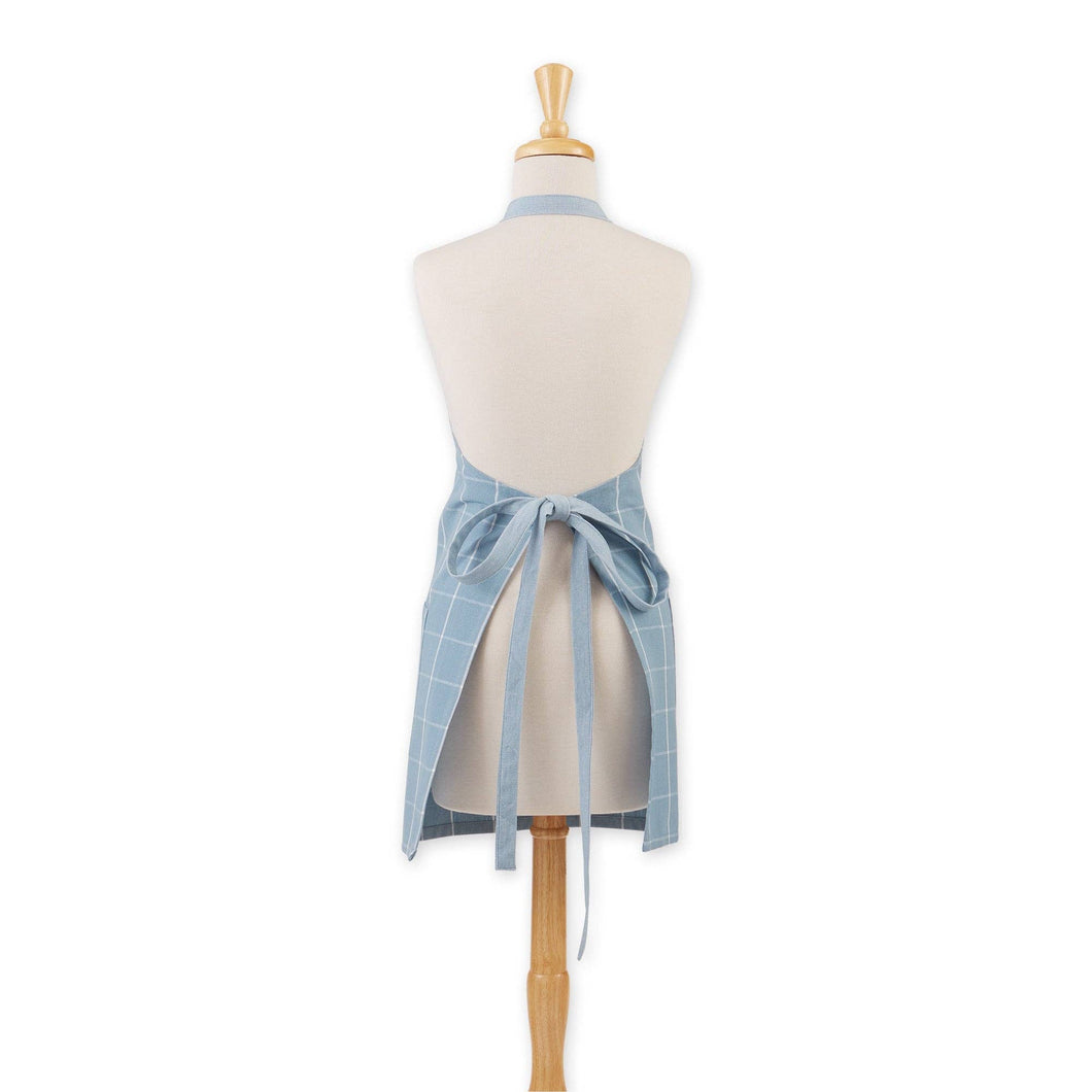 Dusty Blue Windowpane Pantry Apron is crafted from 100-percent cotton and machine washable for easy care. Designed with convenient utility pockets, an adjustable neck loop and generous waist ties for a comfortable fit. Part of our Chef's Kitchen Essentials line, this apron features silver hardware and a decorative twill applique.