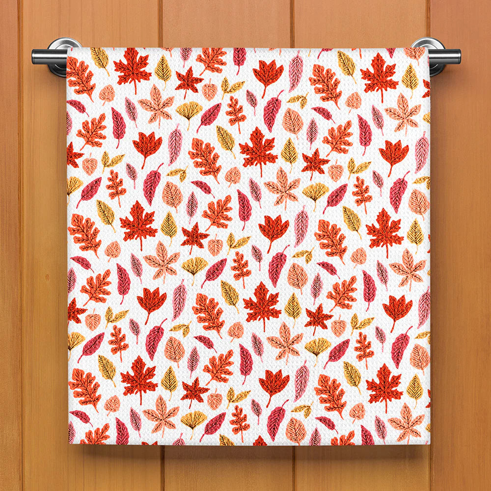 Bring the fall foliage inside! Super absorbent and fast drying, this towel's artful leaves capture the essence of autumn to provide seasonal style while mopping up spills and drying dishes at family gatherings.