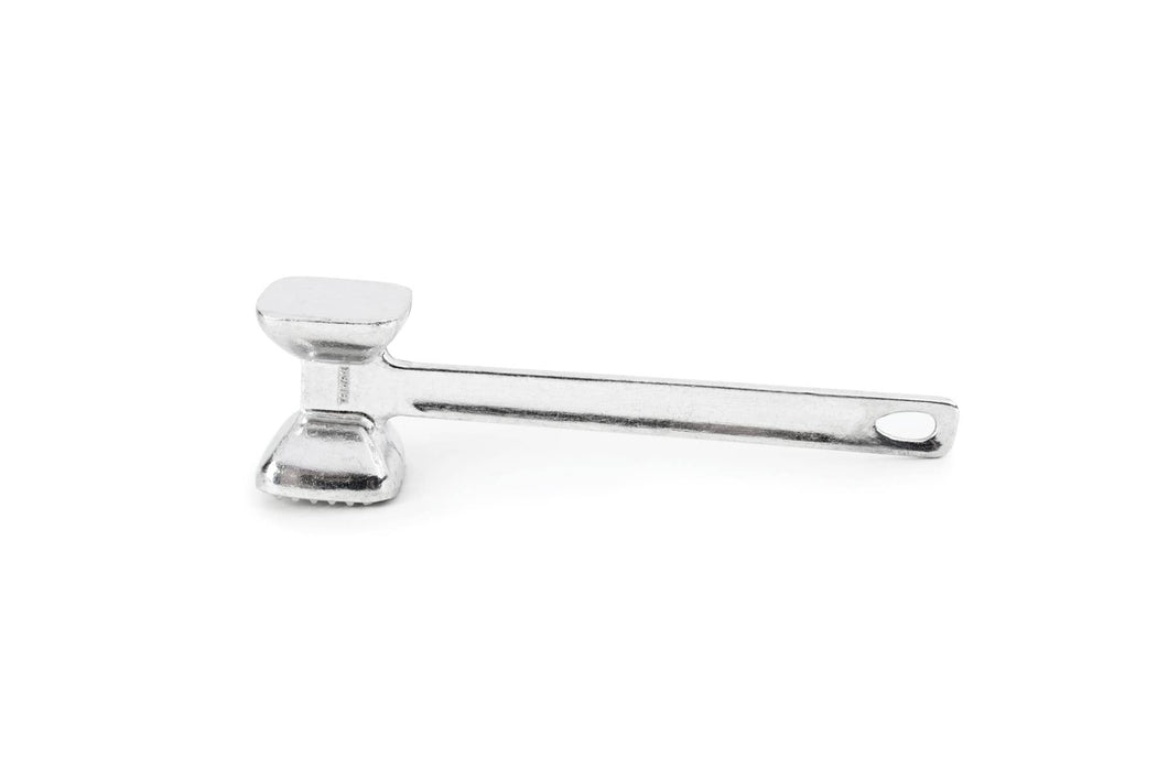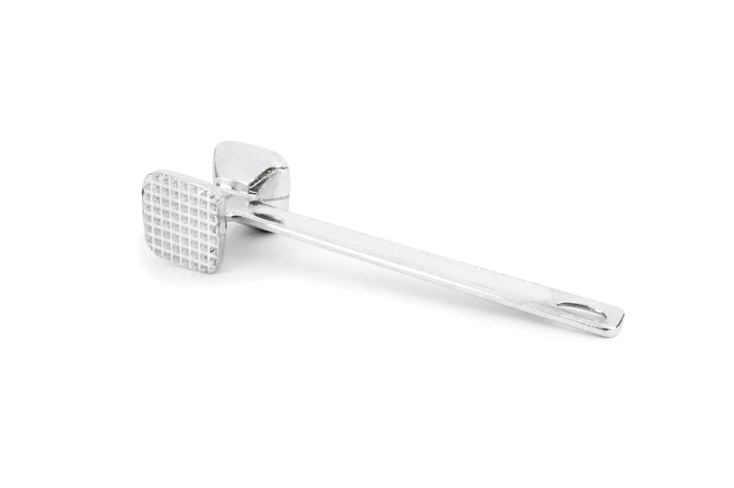 It's hammer time. Tenderize your meats to perfection with this versatile kitchen tool. Constructed of durable aluminum, this meat tenderizer is lightweight, so it's easy to use. It features a smooth surface and raised surface for pounding and tenderizing all types and cuts of meat. This gadget also features a convenient hanging hole for space-saving storage. Once added to your kitchen collection, you'll discover the extensive uses of this item! In addition to tenderizing and flattening chicken, veal, and steak, it can prepare cracked crab, crush nuts and ice cubes, and much more.Package Type: Card (not blister)
