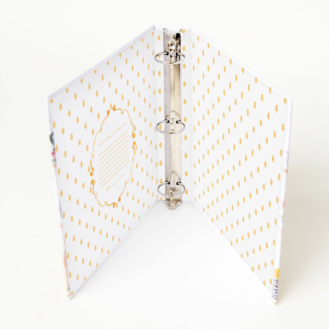 Your customers will love our all-time favorite recipe binder. Ideal for conveniently storing printed recipes, this binder has a 300-page capacity and will keep everything from that recipe they've been meaning to try to family favorites. - Wipable vinyl cover - Sturdy chipboard construction - 10.5x11.5 inches with a 2-inch spine. - Holds up to 300 pages without sheet protectors - 1.5-inch spine-mounted round rings - Features wipeable patterned liner and bookplate for gift inscription. (A fine-tipped Sharpie is recommended for writing on the laminated material.)