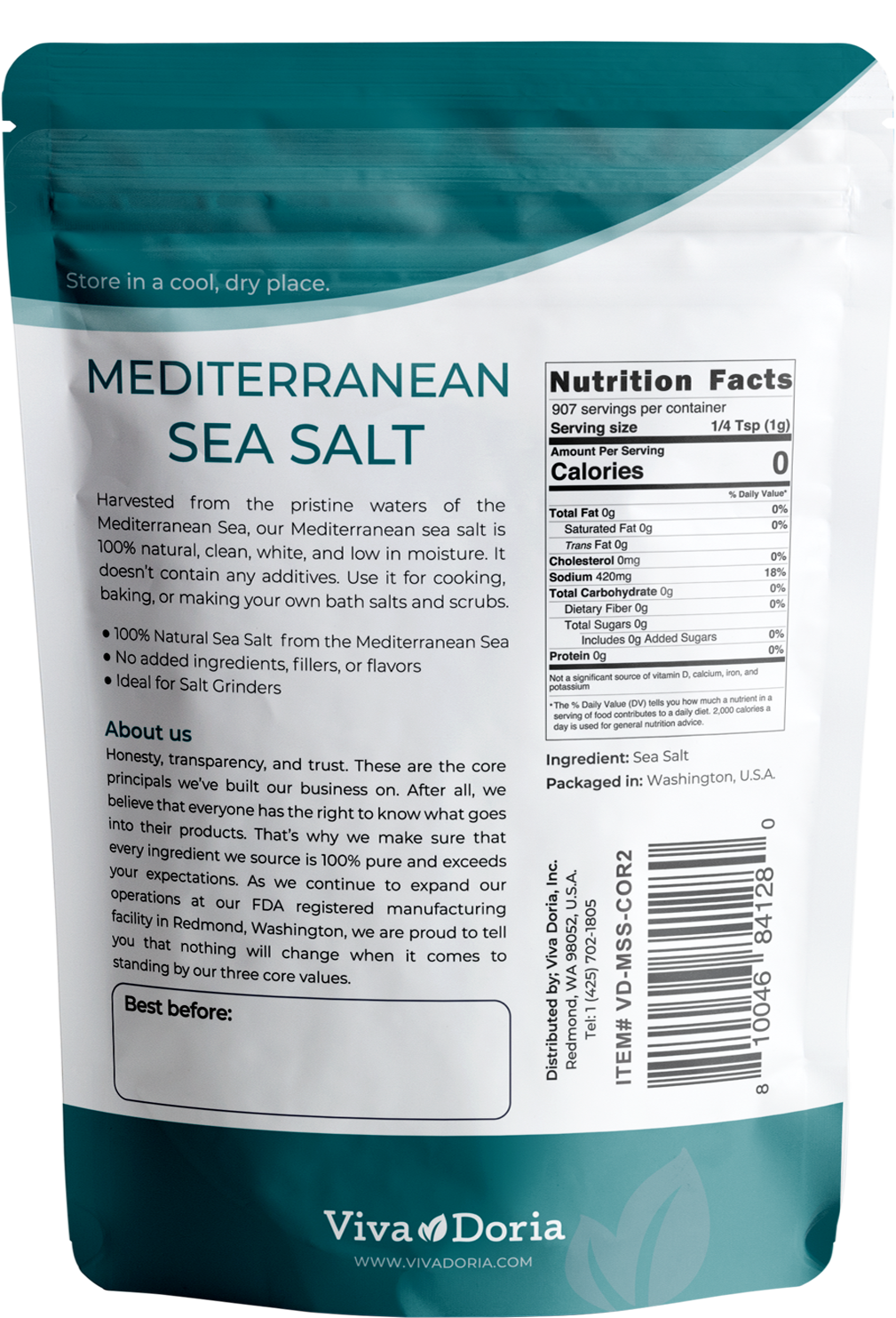 VISUALLY CAPTIVATING: Each crystal glistens with pristine clarity, reflecting the sun's radiant glow and embodying the sea's untamed essence. HIGHEST QUALITY: We ensure that the pure sea salt we source is the highest quality available and exceeds your expectations. SUPERIOR FLAVOR: With its delicate balance of sodium chloride, minerals, and trace elements, our salt imparts a nuanced flavor profile that enhances every culinary creation. RE-CLOSABLE STANDUP POUCH: Our pure Arabian Sea Salt comes in a re-closable standup pouch bag - makes it convenient to use. ORIGIN: Harvested from the pristine waters of the Arabian Sea.
