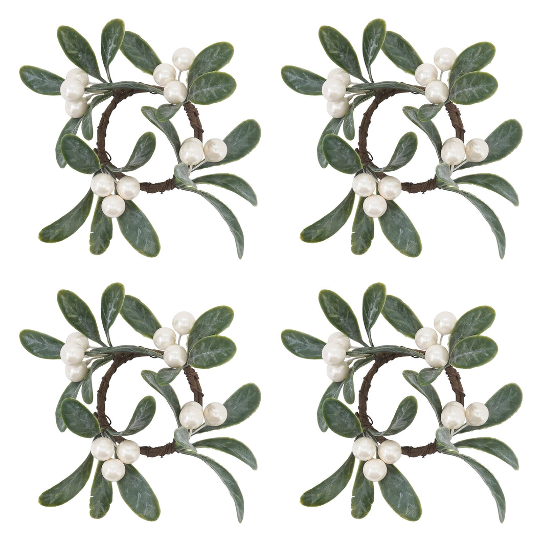 Sold Per 4 Pieces; Priced Per Piece - Decorate your holiday table with these adorable Mistletoe Design Napkin Rings. Timeless and festive, these napkin rings also bring a natural look and feel to your table. The white and green color combination makes it easy to pair with a wide range of holiday table décor. Season: Holiday.