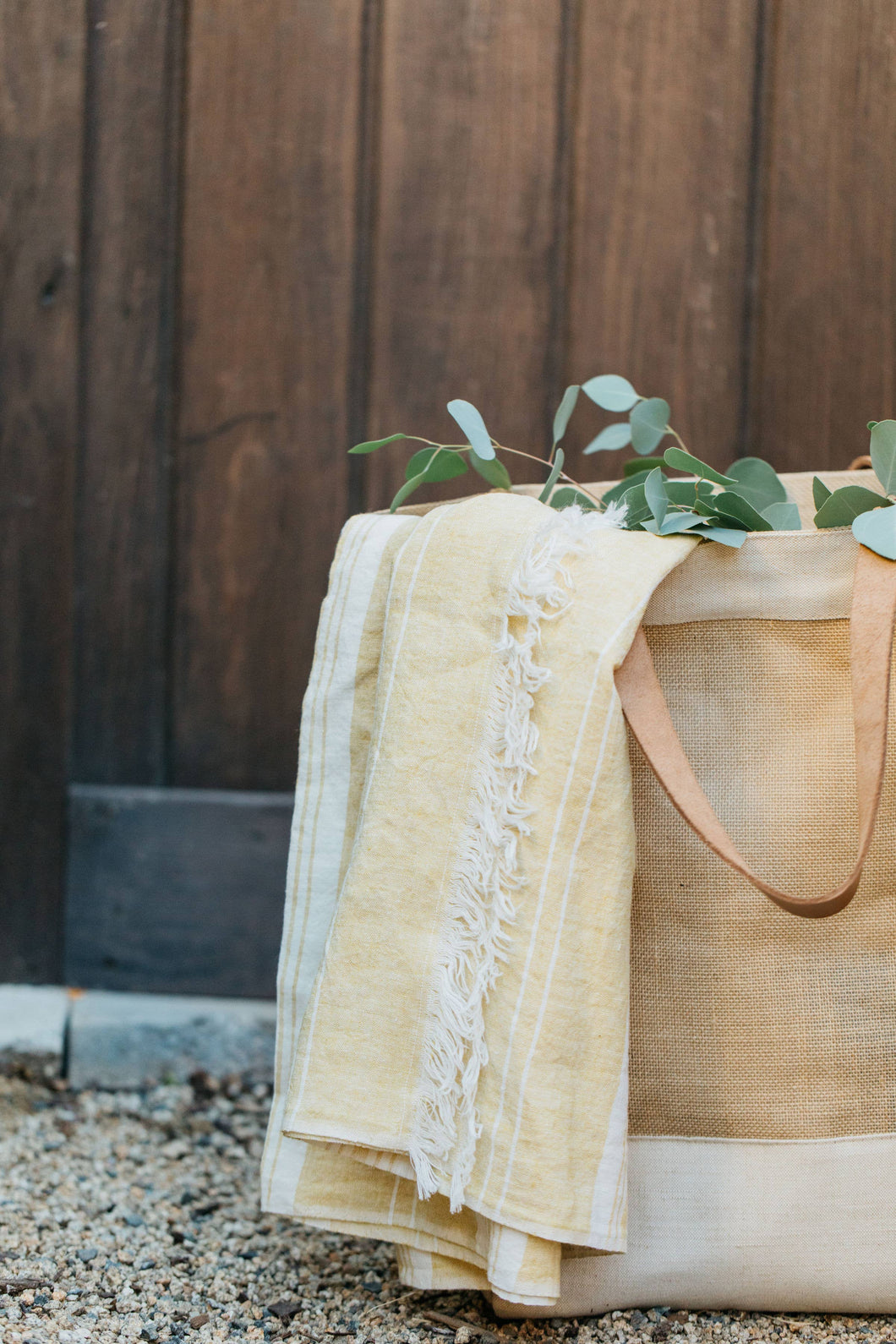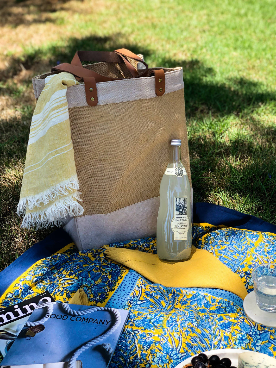 Our roomy tote bags are the perfect accessory for a spring picnic or a day at the farmer's market. Featuring a magnetic closure, lining and a convenient interior pocket. The handles are vegetable-dyed leather, fastened with sturdy rivets and easily fit over the shoulder. Charming and practical, these totes will put a little pep in your step.