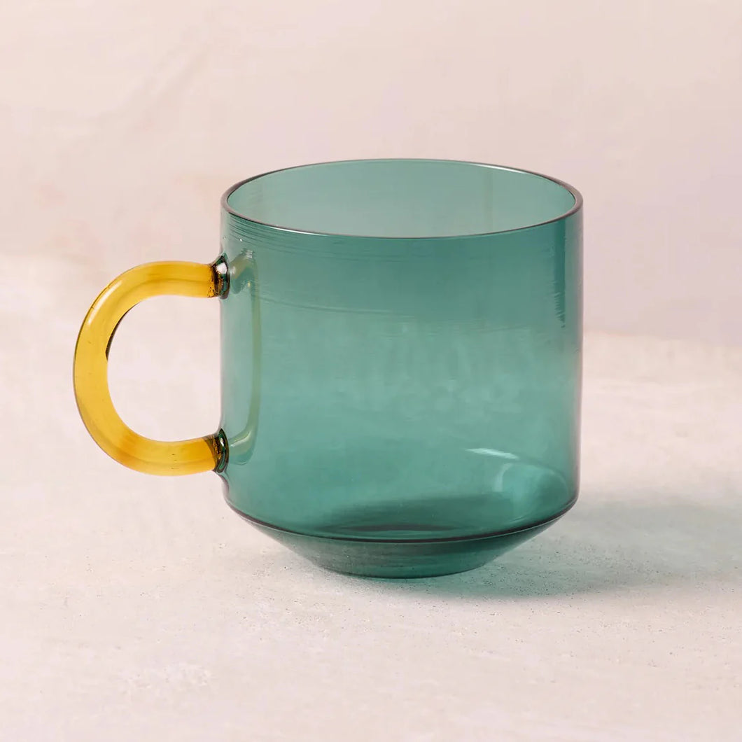 Infuse your daily brew with vintage charm using the Niko Glass Mug. Crafted from durable borosilicate glass, this mug features a delicate silhouette shaped from molten material, exuding timeless style. Its jewel-toned duotone hues, seamlessly infused before molding, add a striking and unique touch. Artisan-crafted in India, the Niko Glass Mug combines functionality with an artistic flair, making every sip feel special.