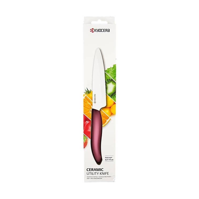 Not as large as a slicing or chef’s knife, the Revolution 4.5" utility knife is a good all-around tool for basic kitchen cutting of smaller fruits and vegetables. Features an ultra-sharp, long-lasting zirconia blade, and the ergonomic handle provides knuckle clearance and precise control. Available in several colors.