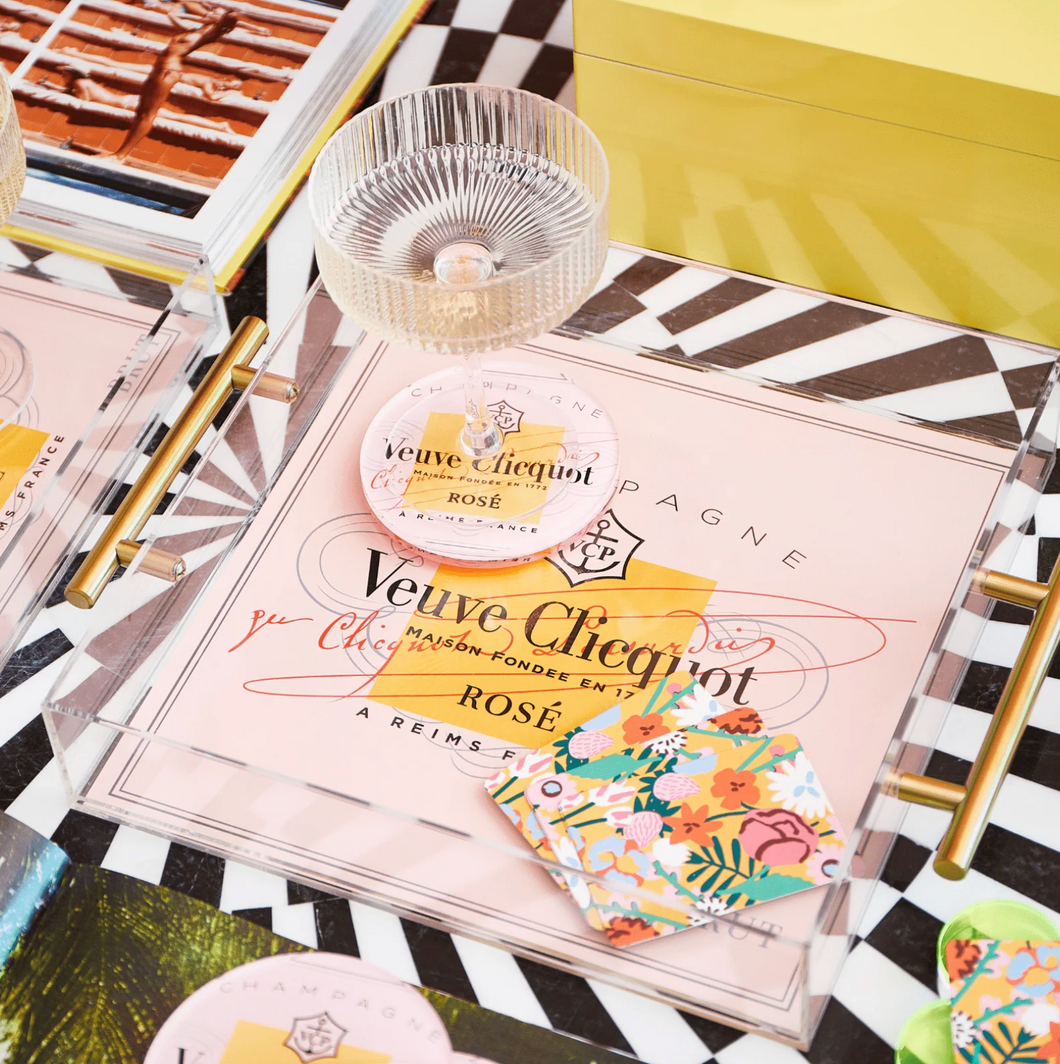 Elevate your decor with this 'Rose All Day' acrylic tray! Our large tray will proudly showcase your favorite jewelry, trinkets, and other would-be-misplaced items. With its bold statement and whimsical design, this tray is not just a practical accessory but also a stylish addition to your home. So, cheers to rose all day!