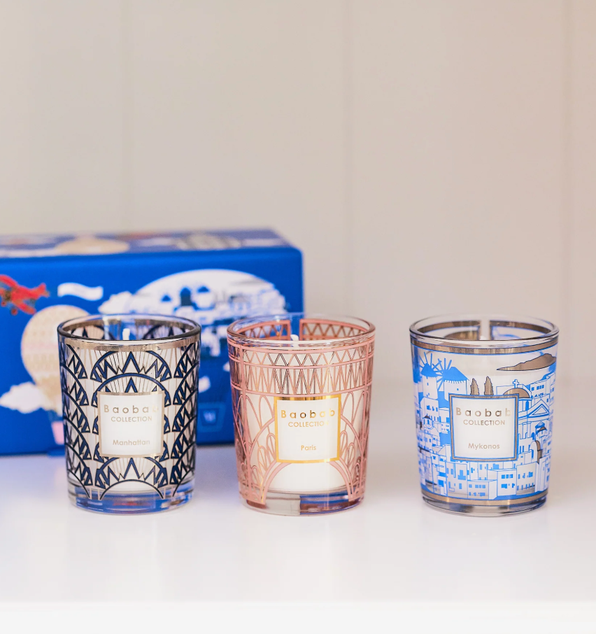 Manhattan: Its scent of cypress, lavender and papyrus will transport you to the corner of Madison Avenue and 82nd Street, where springtime fragrances escape Central Park. Paris: Its fragrance in a blend of lime blossom, wisteria and mimosa will transport you to the romanticism of the city. Mykonos: Its scent of basil, jasmine and patchouli will carry you away to the scents of a sun-drenched summer.