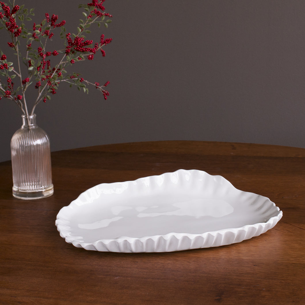 The lively Bloom Collection, presented in luxury melamine, represents a collaboration between Beatriz Ball and Louisiana-based ceramicist Gretchen Murchison. The Bloom Collection contains sculptural bowls and platters inspired by floral, botanical and other natural forms that are beautiful as well as functional. A case in point is the VIDA Bloom Pinched Large Oval Platter (White) in luxury melamine. With an organic form punctuated by rippling fluting, the dynamically designed serving platter combines beauty, artistry and functionality. Perfect for serving a variety of foods in style, it makes a striking piece of home décor. Presented in a glistening white melamine with the look of ceramics. Dishwasher safe (top rack), heavy-weight, food safe, BPA and PABA free.