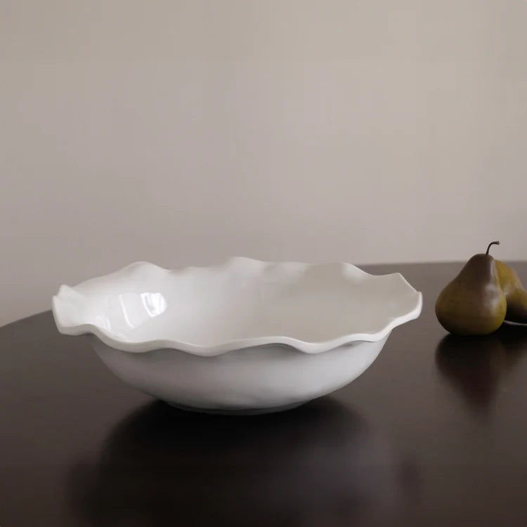 “Ample” is a word that best describes our VIDA Havana Large Pasta Bowl (White). An essential item from Beatriz Ball's VIDA Collection of luxury melamine with flirty Havana styling its generous size makes it ideal for tossing pasta or salads. With a perfectly irregular shape and a brilliant white surface, the versatile large bowl may be paired with VIDA Havana Medium Pasta Bowl (White) for a coordinated serving set. The handy bowl has the feel, heft and look of a ceramic piece. Use it for fruit, salads, pasta and more. A versatile design you'll reach for everyday! Made of luxury melamine for everyday enjoyment, this piece is ideally suited for indoor and outdoor entertainment. Dishwasher safe (top rack), heavy weight, food safe, BPA and PABA free.