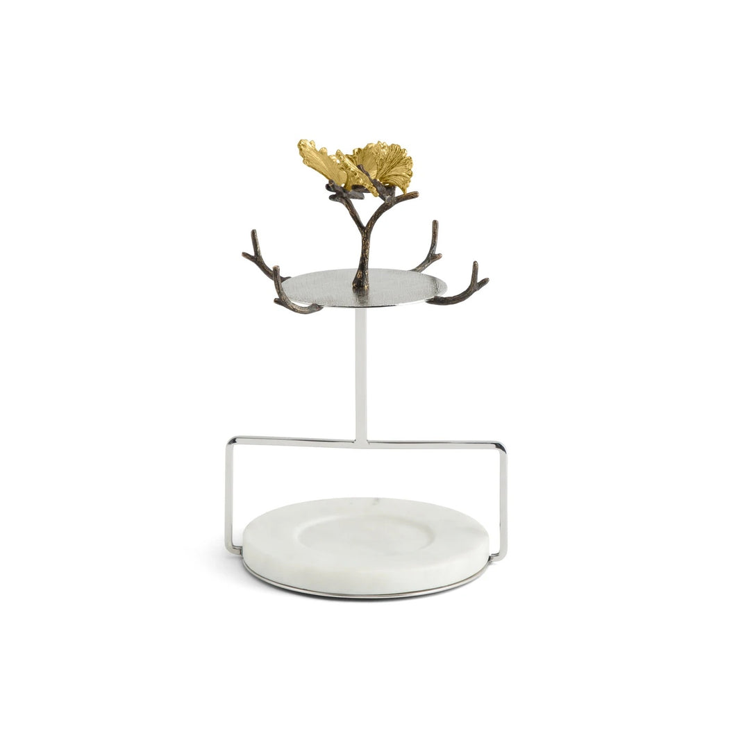 The Butterfly Ginkgo Collection celebrates the representation of flora as fauna. Michael's fascination with a particular type of ginkgo tree , the Ginkgo Biloba, or "Butterfly Ginkgo", which grows with a double leaf reminiscent of a butterfly's wings, gave rise to a fantasia image of the plant. Executed at the highest level of handcraftsmanship, each piece is rendered in solid brass with hand etched cocoon-shaped vessels. The pieces in the collection are a tour de force of the handcrafted process, capturing the poetic spirit that is so deeply indicative of Michael's work.