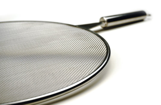 - Prepare fried foods cleanly and safely using our endurance 18/8 stainless steel splatter screen. The double fine-mesh of our splatter screen contains hot oil splatters inside the pan keeping your kitchen and cooktop free from grease, while protecting you from grease burns when cooking.