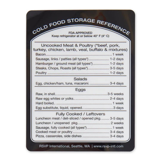 Reference this label to know if your refrigerator food is FDA approved safe to eat whether it's meat, dairy, leftovers and more.