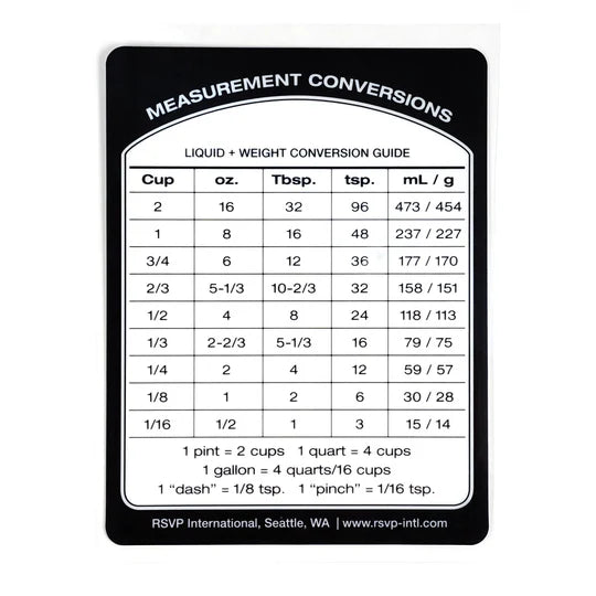 - Measure your ingredients accurately every time with this complete conversion chart anywhere in the kitchen.