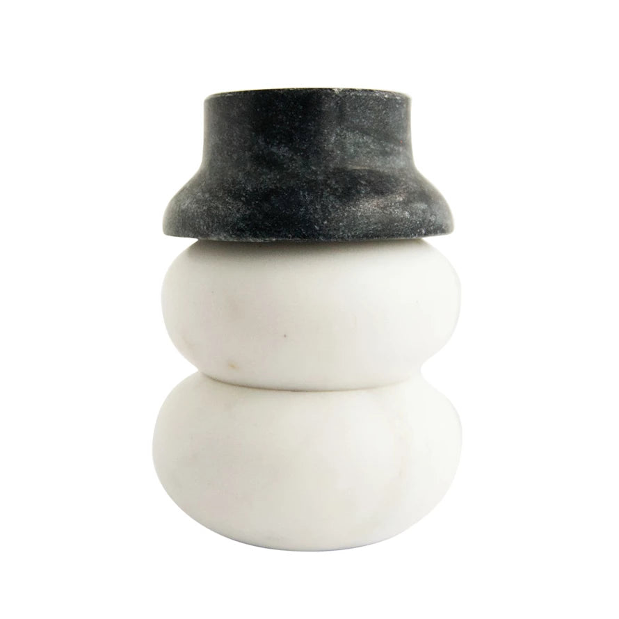 This charming set of three marble pinch pots, designed to resemble a snowman with a hat lid, is a delightful way to present condiments or small snacks. The crisp white and black colors evoke the joyous spirit of winter, while the varying sizes—3 inches round by 1.5 inches high for the bottom pot, 2.75 inches round by 1.5 inches high for the middle pot, and 2.75 inches round by 1.5 inches high for the hat lid—make them versatile for different uses. Hand wash is recommended to keep this enchanting set looking its best. These pinch pots are not only functional but also make for a festive and whimsical addition to any table setting. The smooth marble material adds a touch of elegance to any occasion. A playful trio of marble pinch pots shaped like a snowman, complete with a hat lid, in classic white and black. An adorable addition to any winter-themed kitchen or festive table setting, these pots bring a touch of whimsy. This set is perfect for holding spices or small treats, adding a merry touch to any holiday spread.