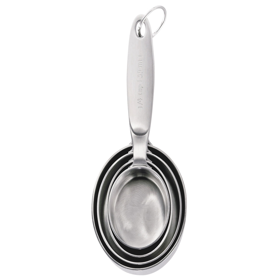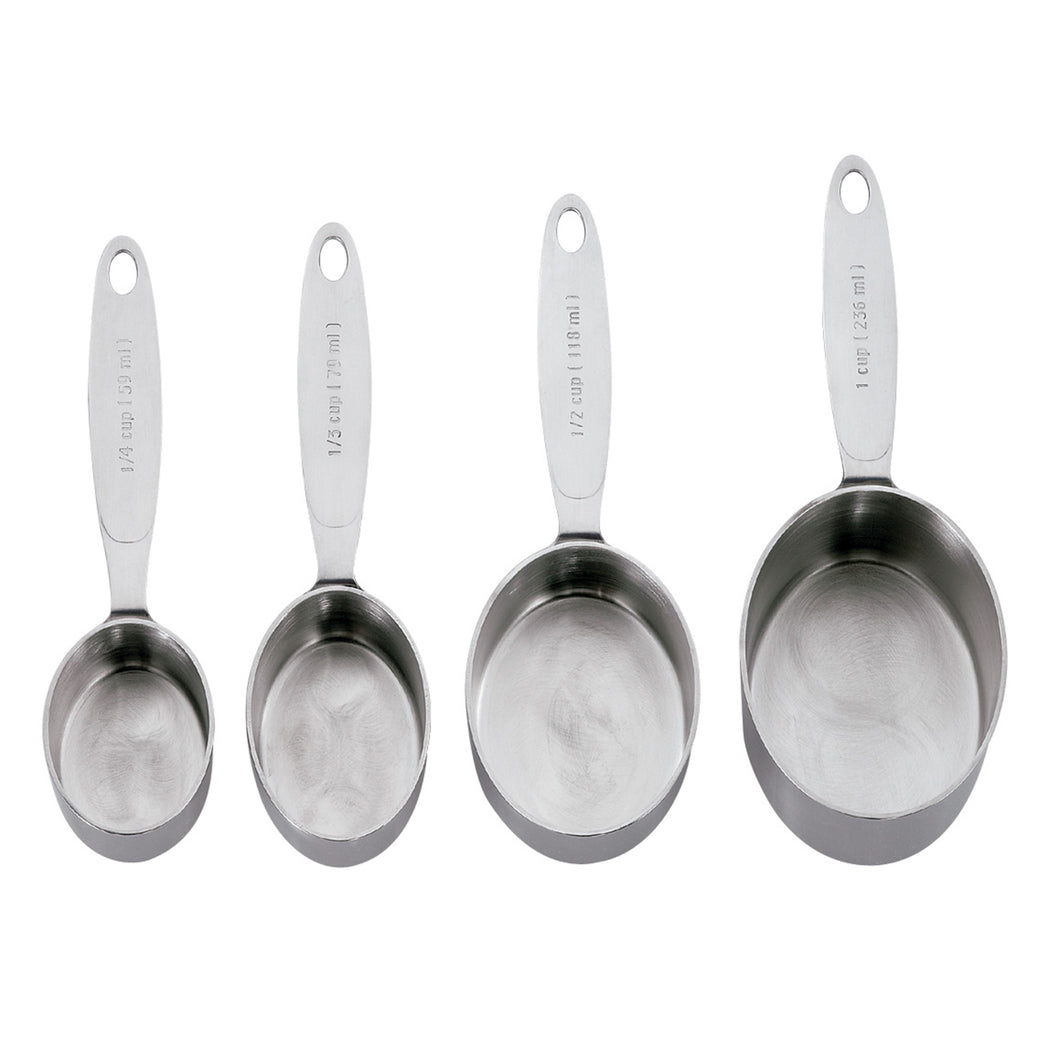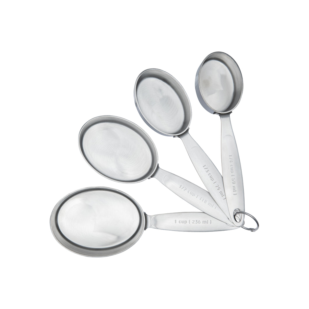 See why our measuring cups are highly rated - as they are made to measure! Their unique oval shape allows for easy scooping, and fitting into narrow jars. You can feel the durability! Made from high quality stainless steel.  They fit together neatly and are held together with a simple storage clip.