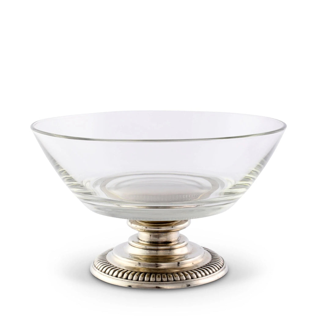 Inspired by shapes and decorative motifs of the Italian Renaissance, our clear glass Medici Footed Serving Bowl stands on a tiered base of luxury pewter embellished with a classical gadroon pattern. Blending the classic design with a modern glass bowl adds old world charm to contemporary service. Perfect for serving special dishes that stand out in the bounty of your table.