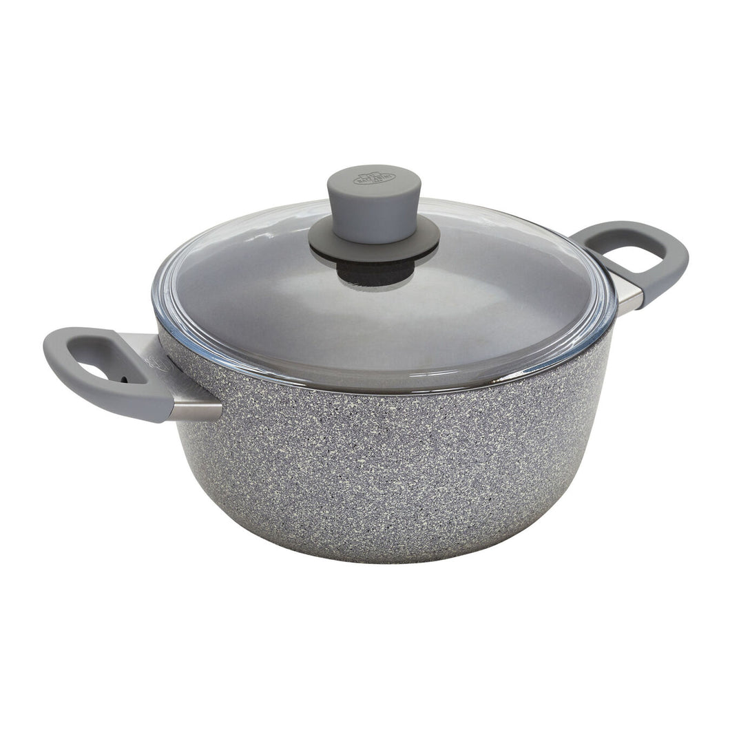 Offering ample room for big batch braising and stewing, the 4.9-quart Dutch oven ensures you won’t crowd your food. And the handy glass lid lets you keep an eye on food as it cooks. Thanks to its signature speckles, the superior BALLARINI Parma Plus line is a nonstick like no other. The Granitium nonstick coating is reinforced with revolutionary speckles and ceramic particles that ensure quick release and easy clean up. With a heart of stone, this ultra-durable Granitium coating boasts unsurpassed scratch resistance, making it metal utensil safe. And the comfortable, soft grip handle offers a no-slip grip. Parma Plus cookware heats up rapidly and evenly for superb cooking results each time. Long lasting, easy to clean, and versatile, the full range of Parma Plus cookware, available individually and in sets, makes cooking with friends and family a joy, so you can cook with amore every day.