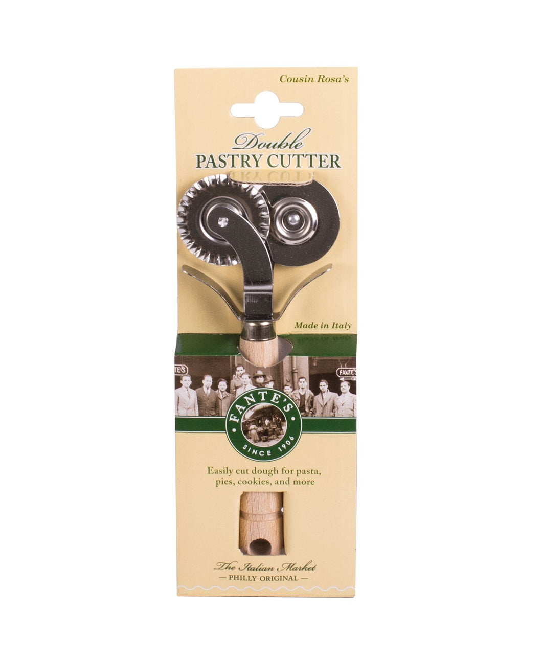 Fantes Cousin Rosa's Double Pastry Cutter makes straight or zigzag cuts from pasta, pie and cookie dough for faster, easier food preparation
