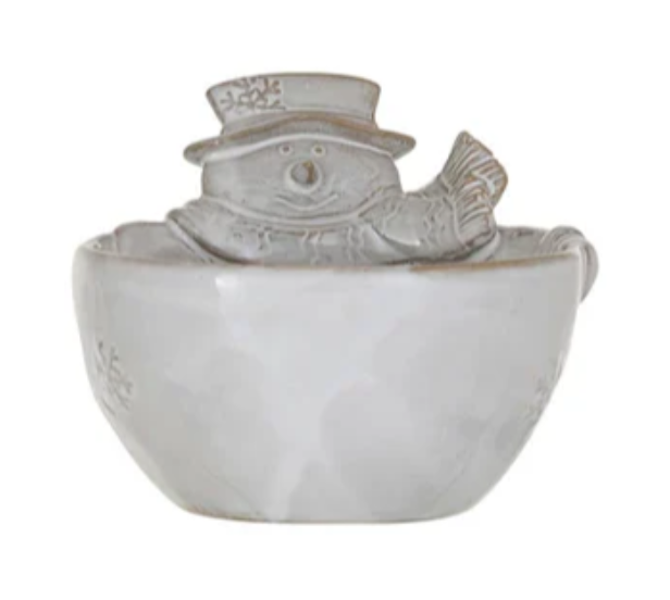 This stoneware bowl, available in two charming styles—Santa or Snowman—features a reactive glaze finish, ensuring each piece is unique. Measuring 5 inches in length, 4.75 inches in width, and 3.5 inches in height, these bowls are perfect for serving holiday treats or as decorative accents. Sold separately, each bowl captures the festive spirit with its playful design and blends seamlessly with any winter decor, adding a touch of seasonal cheer.