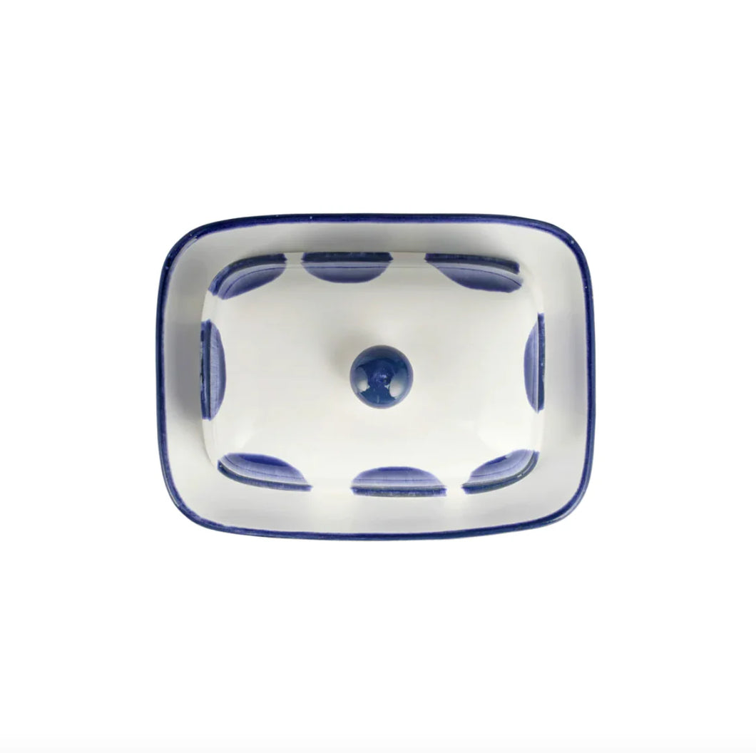Liven up your everyday dining with the playful design of the Santorini Dot Butter Dish, inspired by a well-traveled lifestyle. Drawing creativity from the native colors of the Greek Isles, Santorini will easily become an everyday favorite in your kitchen.