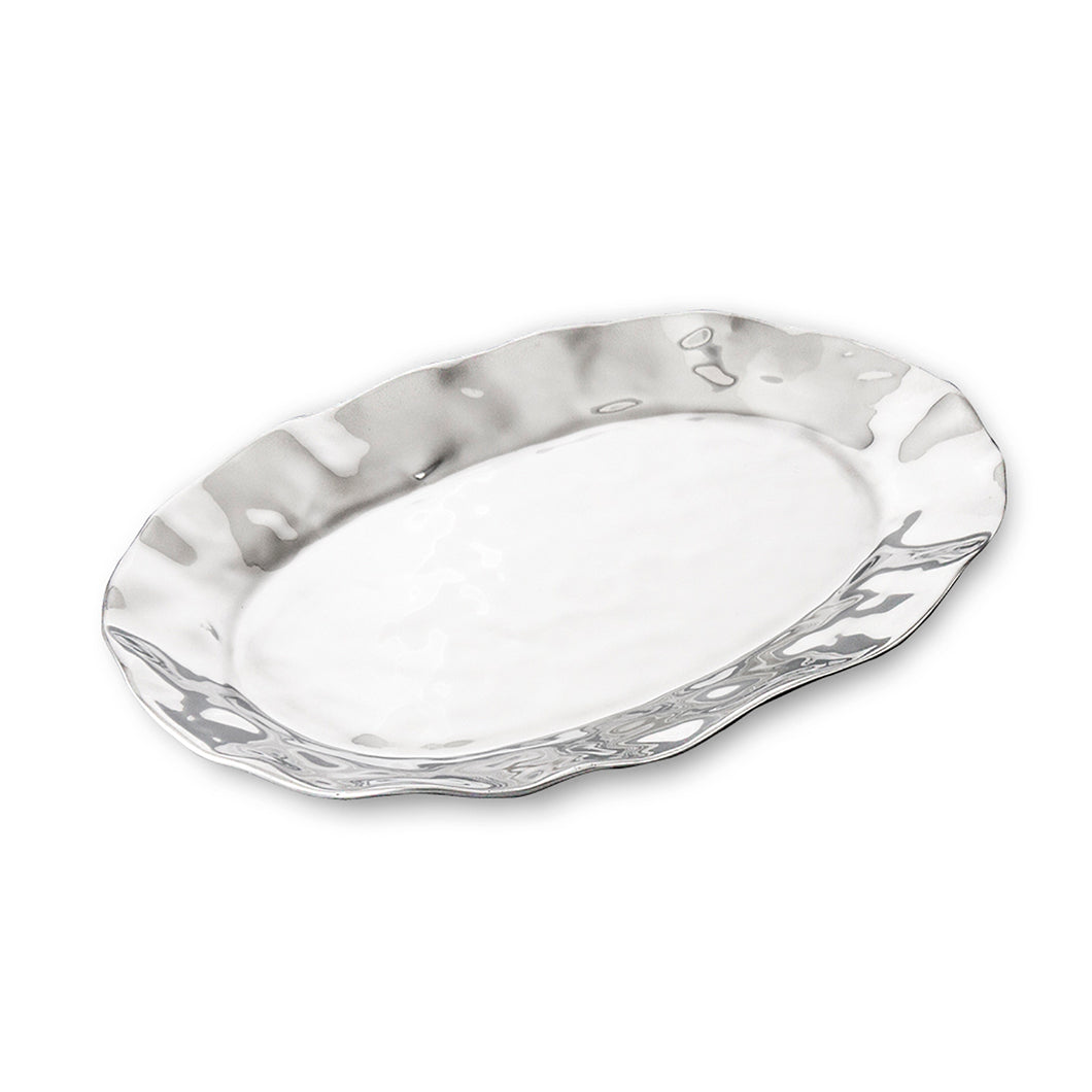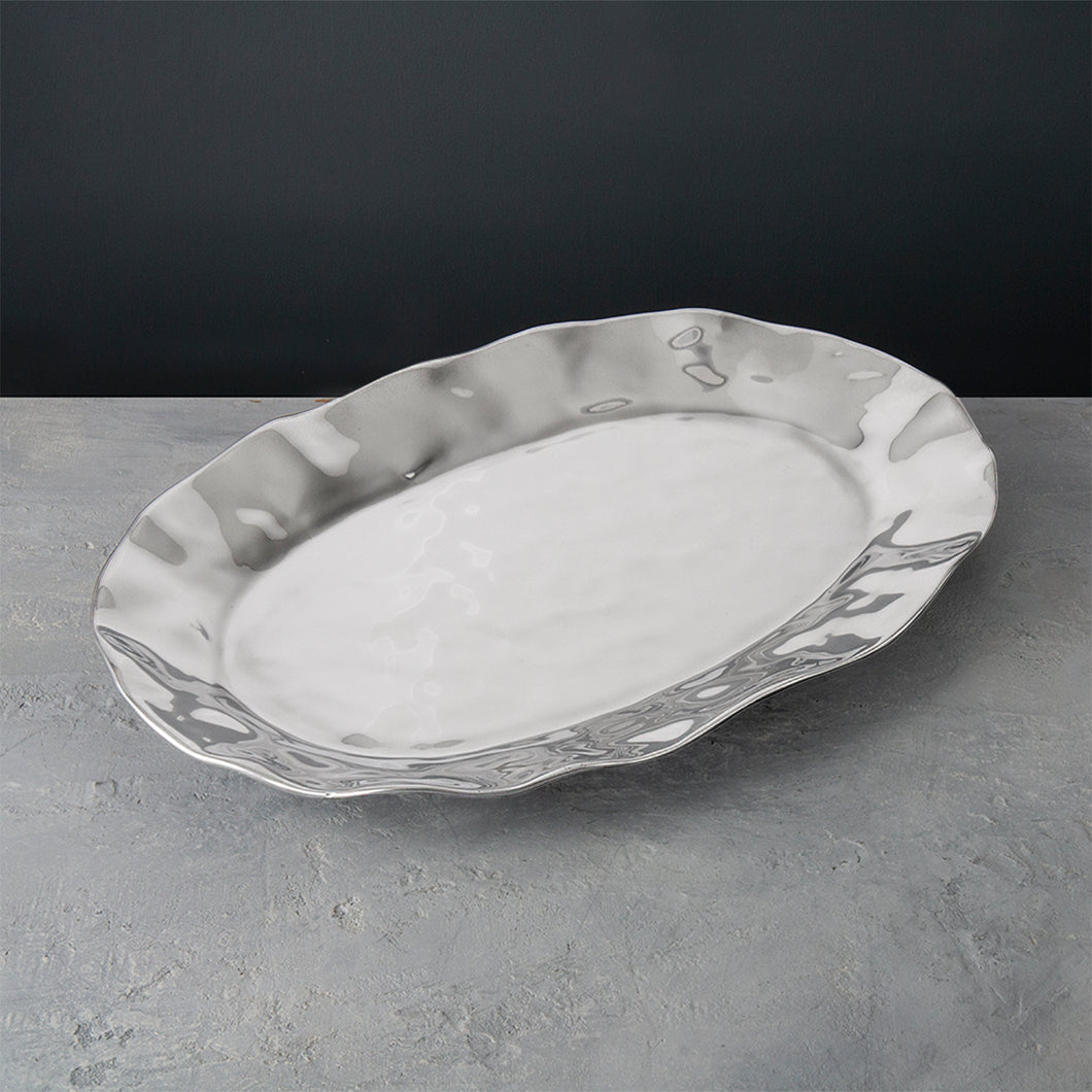 Our SOHO Brooklyn Large Oval Platter brings beauty and function to your table with its generous oval surface, textured by sand-casting and polished by hand to a brilliant finish. Great for serving your favorite foods, but equally useful throughout the house. Designed by Beatriz Ball and handmade by our team of skilled artisans, the wavy indentations on the platter's metal surface create a shimmering effect that enhances any setting. Makes a welcome gift.