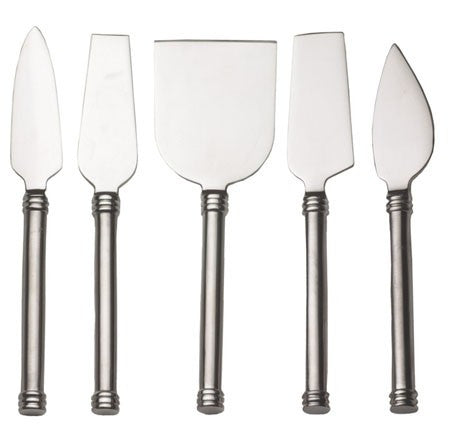 For the wine and cheese lover is this fabulous Set of 5 Stainless Steel Cheese Knives. Each knife features a different blade designed for all types of cheeses. The handles feature a simple yet elegant design and are the perfect length to fit in the palm of your hand. No more uneven chunks or minuscule pieces of cheese!