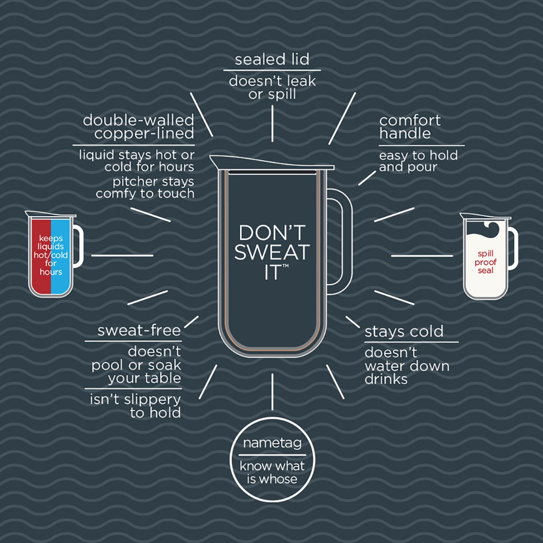 That same double-walled technology is also why the pitcher won't sweat and become slippery to carry or leave puddles on the table.